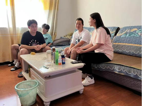 老师一路驾车从大老远的地方跑到我家里,得知老师到了后,我冲出家门把老师领进家,她代表学院给俺家送上了礼物,我妈妈也非常紧张,竟然把老师叫成了学姐,我和我弟弟当场就绷不住了,一切的焦虑在此刻都消失不见。