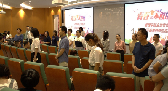 最后,管理学院全体教师送上对毕业生的毕业祝福,并目送全体毕业生离场。
