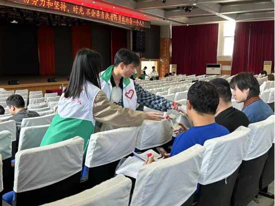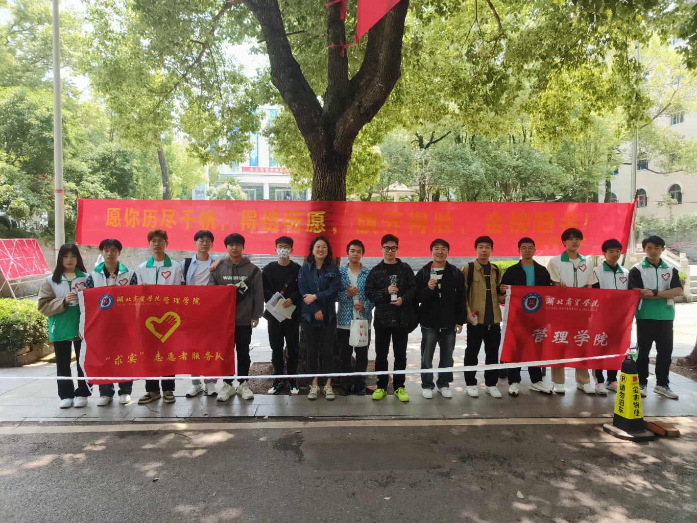 5月8日,为给我校专升本考生送去温暖与祝福,减轻他们的考试压力,管理学院党总支书记王珉、团委书记胡泽华、辅导员刘顺以及管理学院“求实”志愿者服务队在国旗台和荷香苑五楼开展“送你一瓶‘加油水’,祝你成功上岸”专升本考试送温暖活动,为专升本考生送上暖心祝福。