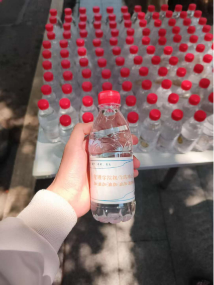 活动中,王珉和志愿者们将“加油水”递给专升本考生,祝福考生得偿所愿,旗开得胜,金榜题名,在下午的专业考试中取得优异成绩。收到“加油水”的同学表示十分开心,感受到了管理学院对自己的关心关爱以及学弟学妹作为后盾的加油助威,也会带着大家的关心与祝福轻装上阵。