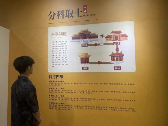 接下来,管理学院团委及学生一支部成员去到进士殿的进士文化展厅学习古代的科举制度以及古代优秀青年考取进士的事例。在参观完展厅后,我们了解到英勇抗击英国侵略者,为民族大义虎门销烟的民族英雄林则徐13岁中秀才,26岁中进士,科举之顺清朝也难有匹敌者。