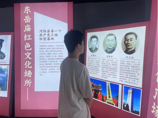 在参观完东岳庙相关红色文化场所,了解到当地青年是如何践行青春使命后,管理学院团委学生副书记周志强说:“东岳庙是沔阳县第一个党小组诞生地,无数革命先烈为了沔阳人民的解放事业,抛头颅、洒热血献出了宝贵的生命,这样无私奉献的精神值得我们青年学习,我们也要以昂扬奋进的姿态书写下无愧于时代的壮丽篇章”