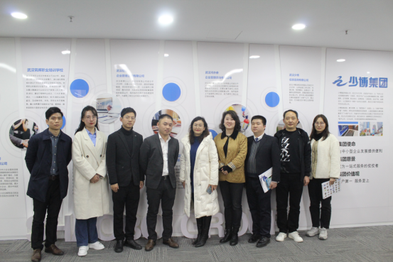 胡柳首先对少博集团有限公司的热情接待表示感谢,为公司取得的可喜成绩表示祝贺。她指出,少博集团怀着“做华中一站企服的佼佼者”的企业理想,秉承“客户第一,服务至上”的服务理念,历经近十年的发展,形成了独特的企业文化体系,并积极投身公益事业,努力践行社会责任,彰显了企业的伟大担当。随后,她指出“党的二十大报告为高校开展毕业生就业工作提供了方向指引。访企拓岗要发挥好‘脚力’和‘语力’,把好的用人单位走个遍,把好的就业政策谈下来,不断扩大市场化社会化就业的‘朋友圈’。”学校始终将毕业生就业工作摆在突出位置,以实施高校书记校长访企拓岗促就业专项行动为牵引,在加强组织领导、建立长效机制、深化就业育人等方面下功夫,努力促进毕业生更加充分更高质量就业。