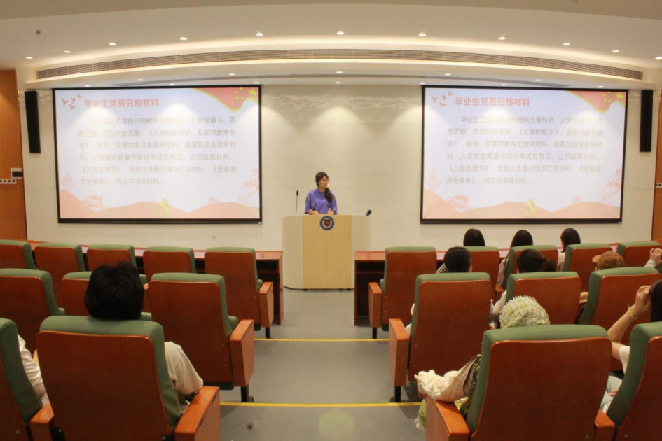 为了确保毕业生党员在离校后能够顺利过渡到新的生活阶段,并保持党员身份的连续性,学院党务秘书杨雪滢详细解读了组织关系转接的具体流程和注意事项,包括省内省外组织关系转接流程,如何与新单位党组织对接,纸质介绍信转接时及时提交介绍信回执等。强调了毕业生党员在未来岗位上的责任和使命,鼓励大家要继续保持党员本色,无论身处何地,都要为社会的发展做出新的更大的贡献。