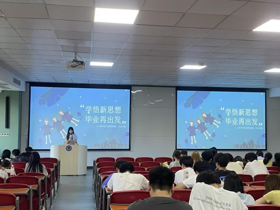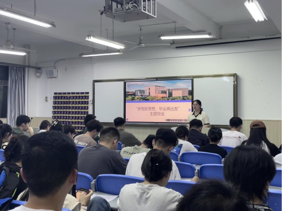 为切实做好2024届毕业生毕业教育和文明离校工作,加强毕业生思想政治教育,坚定理想信念,引导毕业生爱国爱党、爱校荣校,yl7703永利集团于6月6日召开“学悟新思想,毕业再出发”2024届毕业生思政教育主题班会。本次班会主要围绕“信念理想”“文明安全”“心理健康”“诚信有我”“就业未来”五个主题内容展开。
