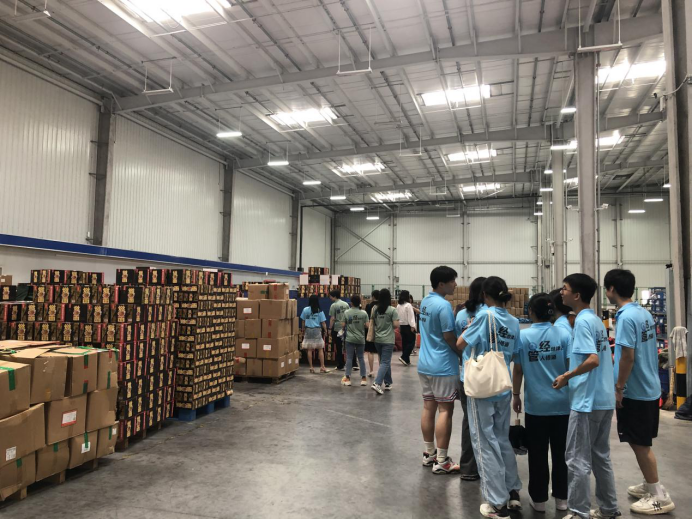 在公司负责人的陪同下,调研团前往黄冈市团风县捷成物流有限公司进行调研。调研团参观了捷成物流的现代化仓库和物流操作中心。一踏入物流公司的大门,学生们就被繁忙而有序的工作场景所吸引。从智能分拣系统到自动化仓库,从货车调度中心到客户服务中心,每一个环节都充满了科技的力量和效率的魅力。