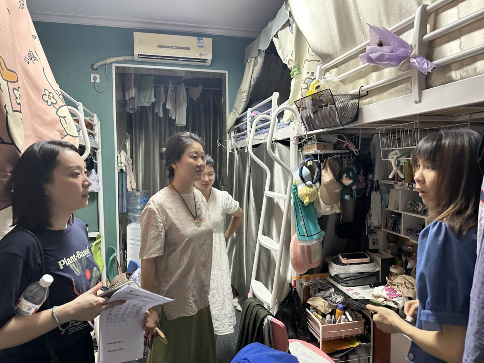 为了解学生暑期的生活状况,传递学院的关怀与温暖,学院党总支书记王珉带领学院辅导员在开学前一晚,逐一走访了学生寝室。每到一处,王珉和辅导员都与学生亲切交谈,询问他们在假期中的学习、生活及思想动态,鼓励大家以饱满的热情迎接新学期的到来。