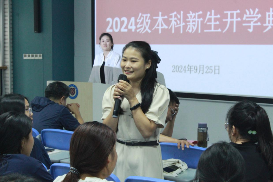 此外,教师代表和学院全体辅导员为2024级全体新生送上祝福,希望同学们珍惜大学时光,不负青春韶华。