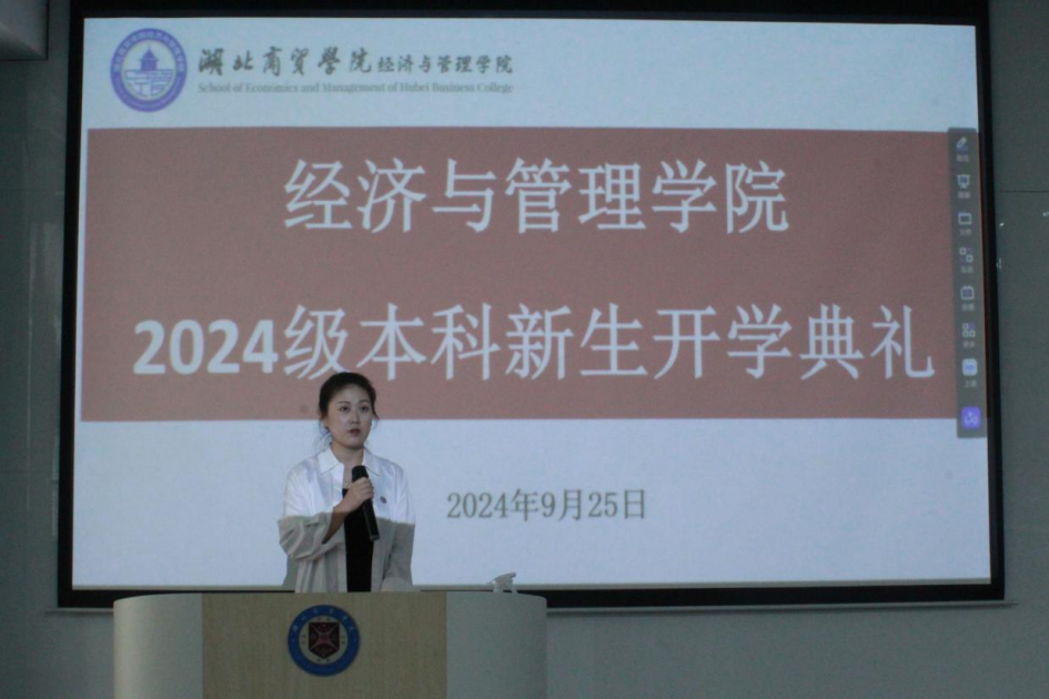 新生代表李萌同学上台发言。她回顾了过去的奋斗历程,表达了对未来的美好憧憬,并呼吁全体新生要努力成为一名“有志、有识、有为”的经管人,以奋进的姿态迎接新的挑战,把握现在,拥抱未来,与yl7703永利集团一同启航。