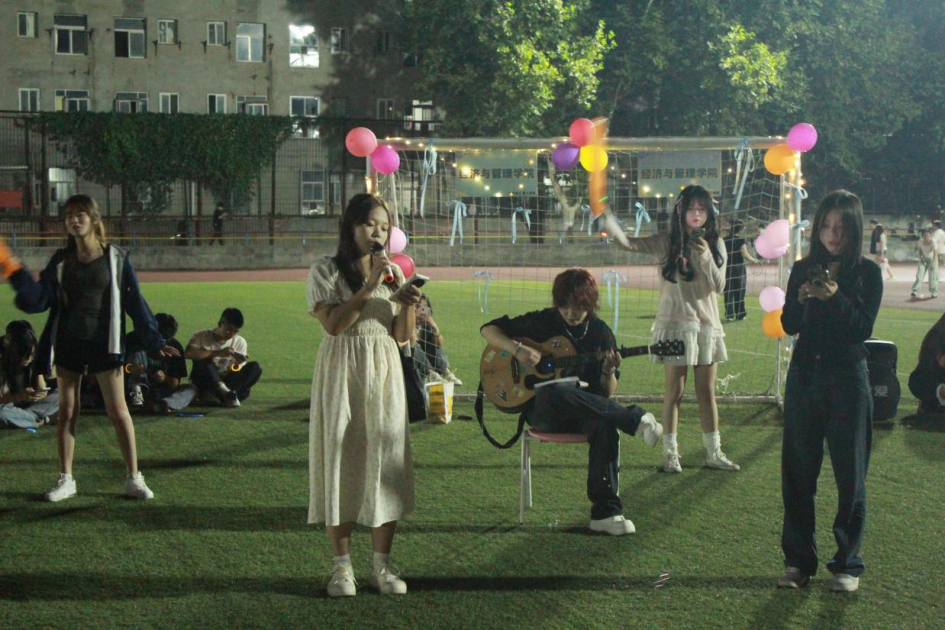 值得一提的是,学院的学生干部为新生举办了一场别开生面的草坪迎新晚会。晚会节目精彩纷呈,既有激昂高亢的歌曲串烧,展现了新时代青年的蓬勃朝气;又有曼妙多姿的舞蹈表演,轻盈的步伐在夜色中勾勒出青春最美的轮廓;晚会期间,还穿插了互动游戏环节,让新同学们在轻松愉快的氛围中迅速拉近了彼此的距离,增进了友谊。现场笑声与掌声不断,气氛热烈而温馨。迎新晚会为新同学们提供了一个展示自我、放飞梦想的舞台,也成为了他们大学生涯中一段难忘的开端。