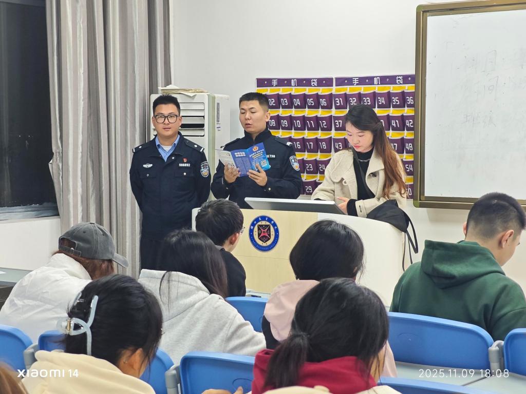 张悦老师特邀资深民警走进班会,以电动车违规充电爆燃、烟头引燃杂物的警示短视频快速吸引关注,随后通过“消防器材猜谜”“安全口诀速记”等趣味环节,以“实操+互动”为核心亮点,让学生在抢答中牢记消防常识。消防员结合本地高校及周边真实火灾案例,拆解电动车楼道充电、烟头未熄灭等隐患引发事故的前因后果,聚焦违规停放、电池改装等乱象,全程摒弃枯燥讲解,让学生在趣味体验中提高消防安全意识、学会认器材、找隐患、懂逃生。