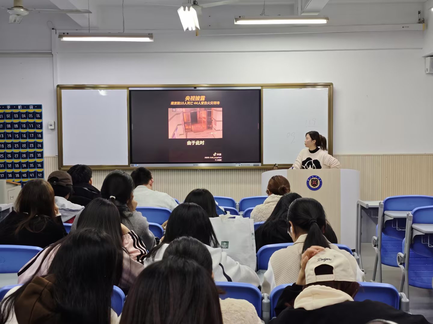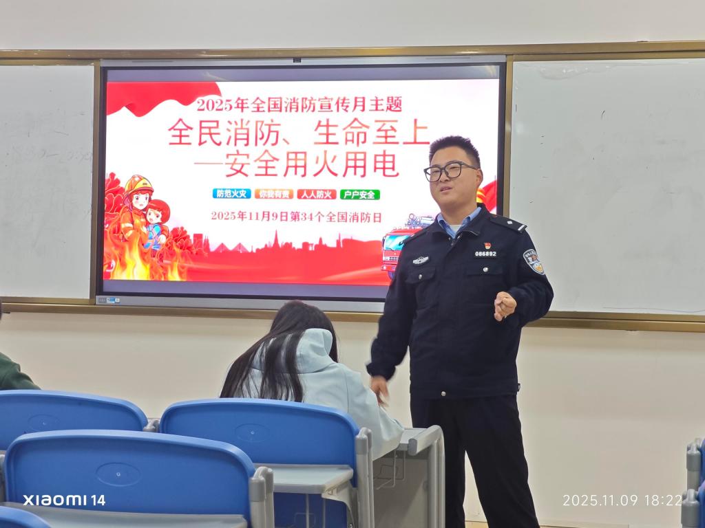 各班级现场互动讨论氛围热烈,学生们围绕“身边常见消防隐患”“如何规范用电用火”等话题积极发言,24金融本1班田子童同学的发言引发全员共鸣:“之前常在楼道见到未灭烟头,视频里火苗快速蔓延的场景太惊心,现在见着必随手踩灭,还会主动提醒身边人!” 大家围绕校园潜在隐患热烈讨论,最终将消防意识深植于心,转化为规范充电、杜绝隐患的行动自觉,让安全理念渗透校园与生活每个角落,共同筑牢生命安全防线。
