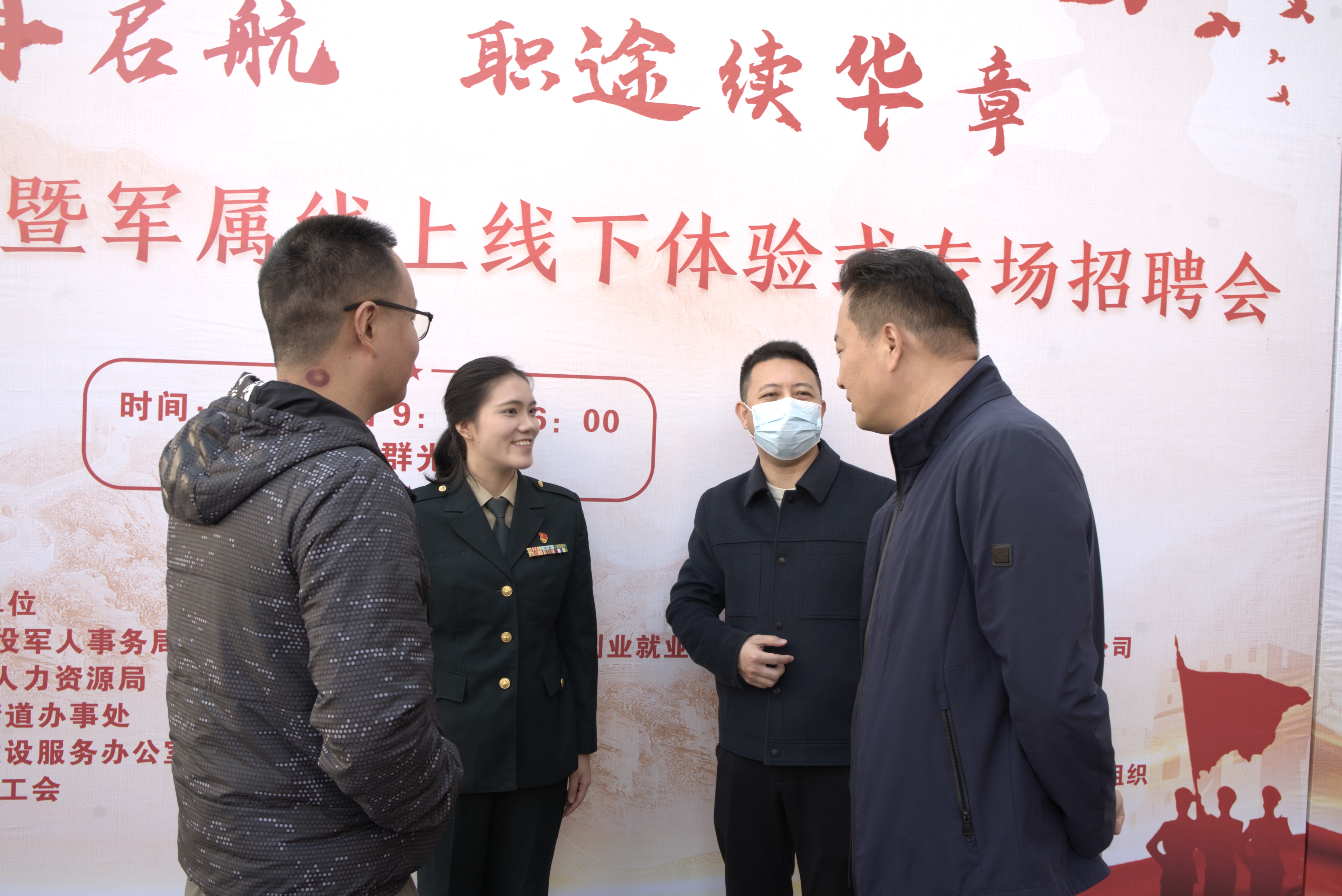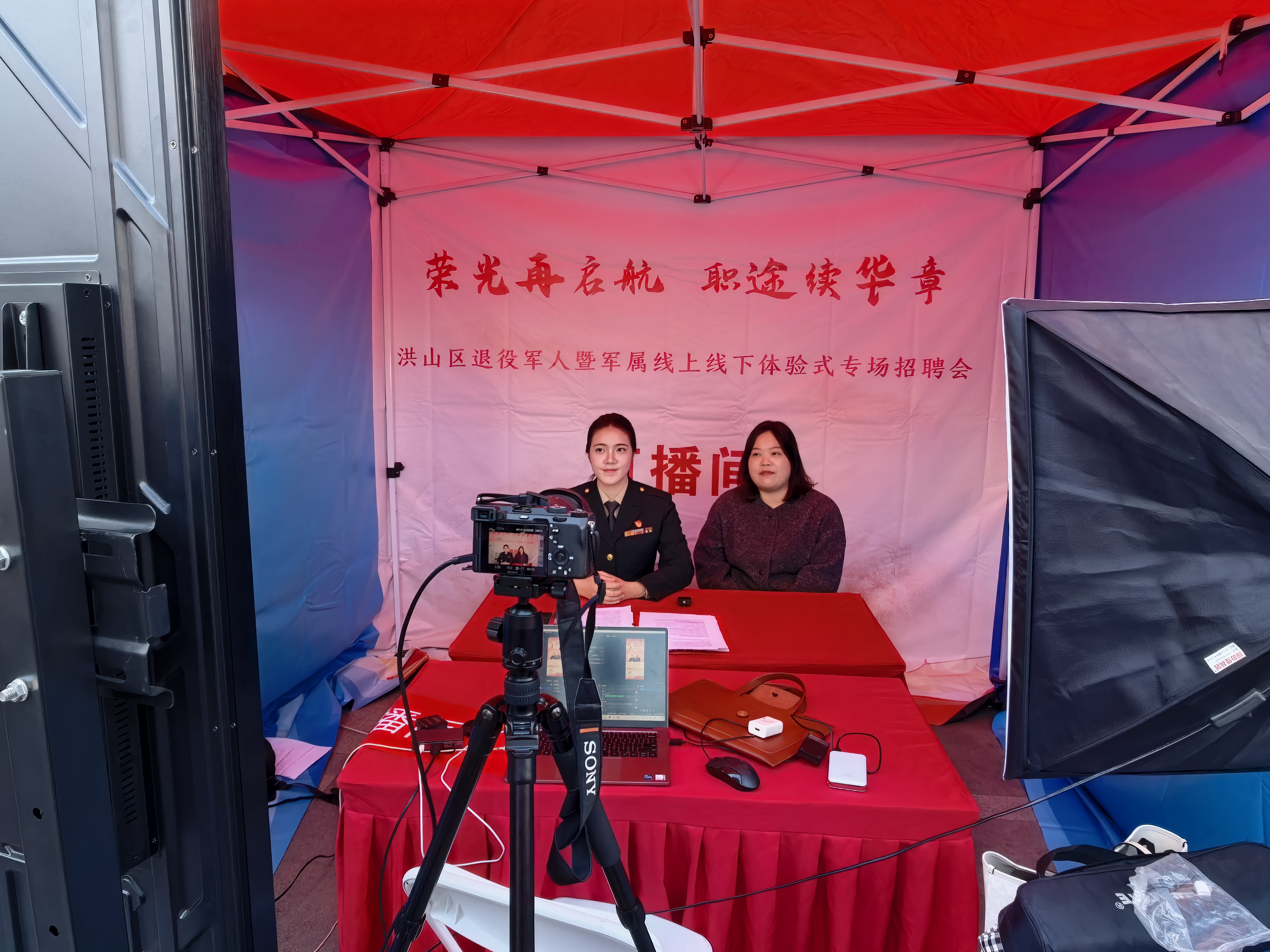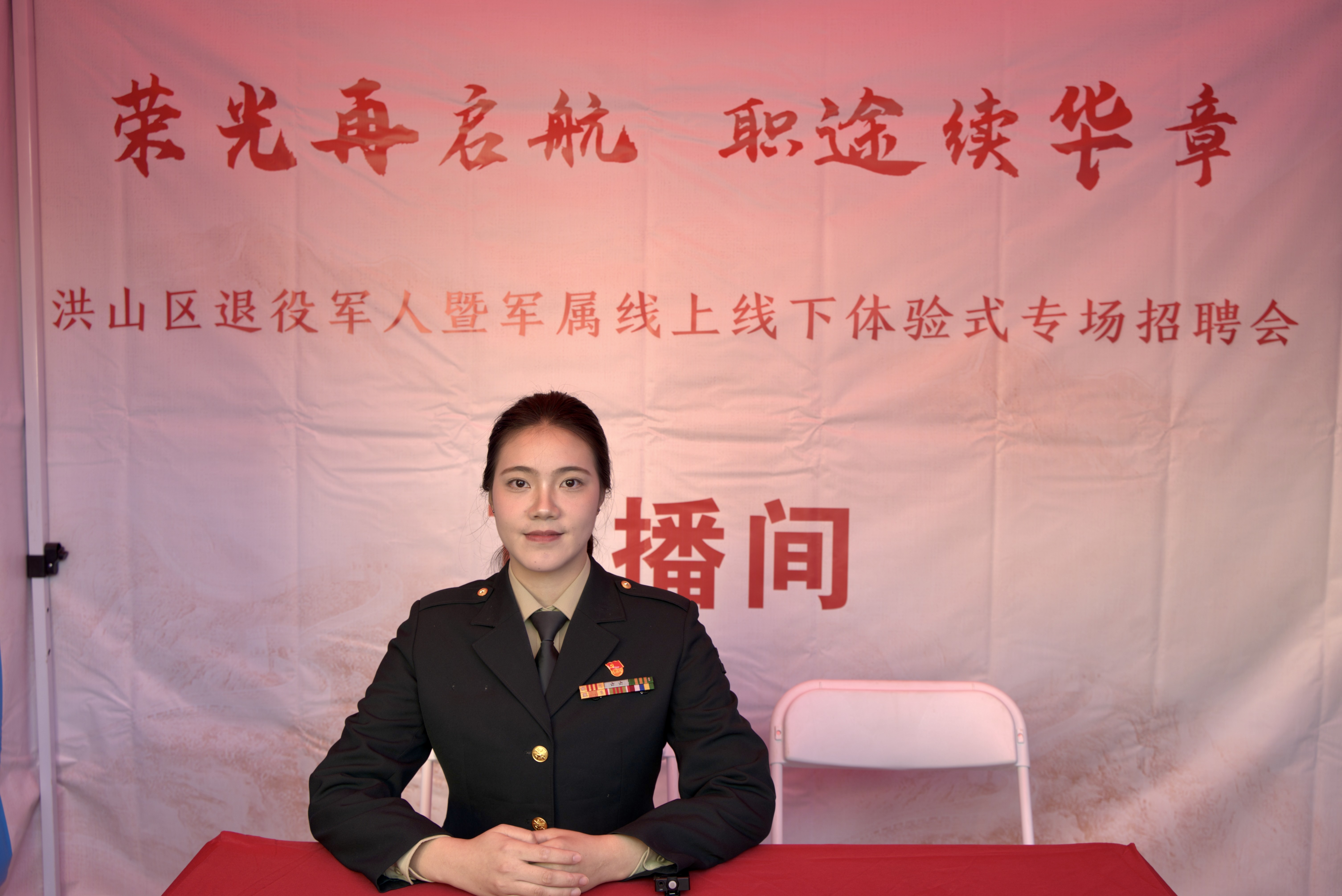 11月30日,由武汉市退役军人事务局、洪山区人民政府指导,洪山区退役军人事务局、洪山区人力资源局等多家单位联合主办的“荣光在启航 职途续华章”洪山区退役军人暨军属线上线下体验式专场招聘会在群光广场隆重举行。yl7703永利集团退役女兵、24金融本1班学生毕婧怡担任本次招聘会线上直播主持人,以军人的严谨担当与青年的蓬勃朝气,为广大退役军人搭建起与企业对接的优质平台,助力战友们在职业新赛道上续写辉煌。