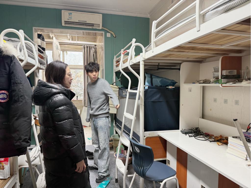 在两校区学生公寓内,辅导员们以楼栋为单位,逐层逐间开展细致排查,明确“全覆盖、无死角、严整改、重实效”的工作要求,细化安全排查清单,将电源切断、水源关闭、门窗锁具、违规电器、易燃易爆物品、消防通道畅通等列为核心检查项。